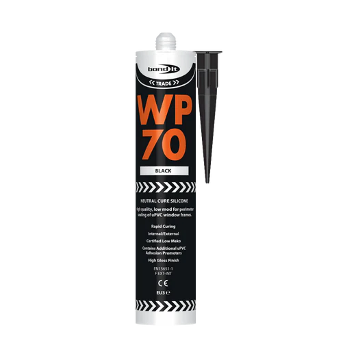 Uses: For perimeter sealing of external wood, aluminium and uPVC door and window frames and for weather sealing and flexible jointing of infill panels. Can also be used on concrete, plaster and mortar. While WP70 is suitable for sealing windows and doors in most circumstances its flexibility range is 12.5% and as such joints where more extreme movement is expected may be better sealed using the Bond it WP100 premium silicone offering 25% flexibility.