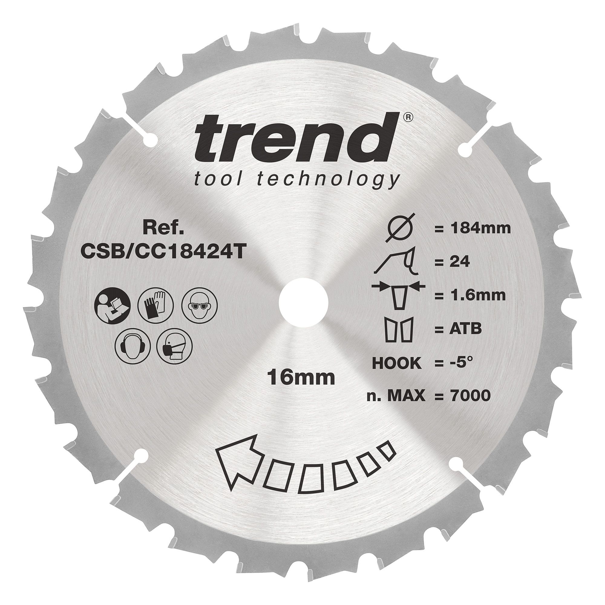 - Trend CSB/CC18424T Trend Wood Cordless Mitre Saw Blade 184mm x 16mm x 24T