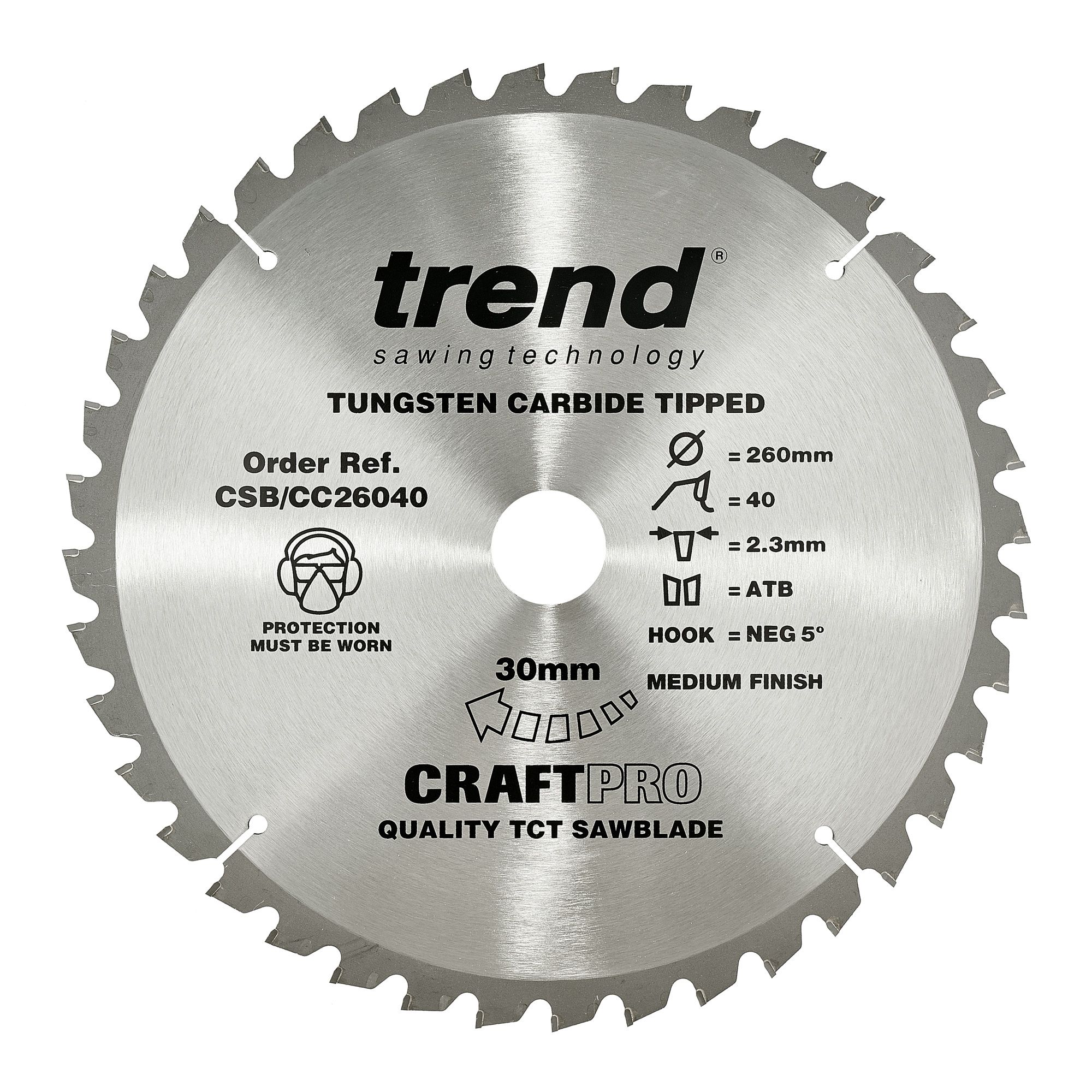 - Trend CSB/CC26040 Trend Wood Mitre Saw Blade 260mm x 30mm x 40T