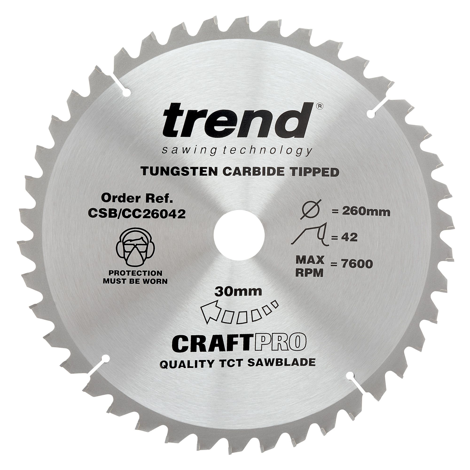 - Trend CSB/CC26042 Trend Wood Mitre Saw Blade 260mm x 30mm x 42T